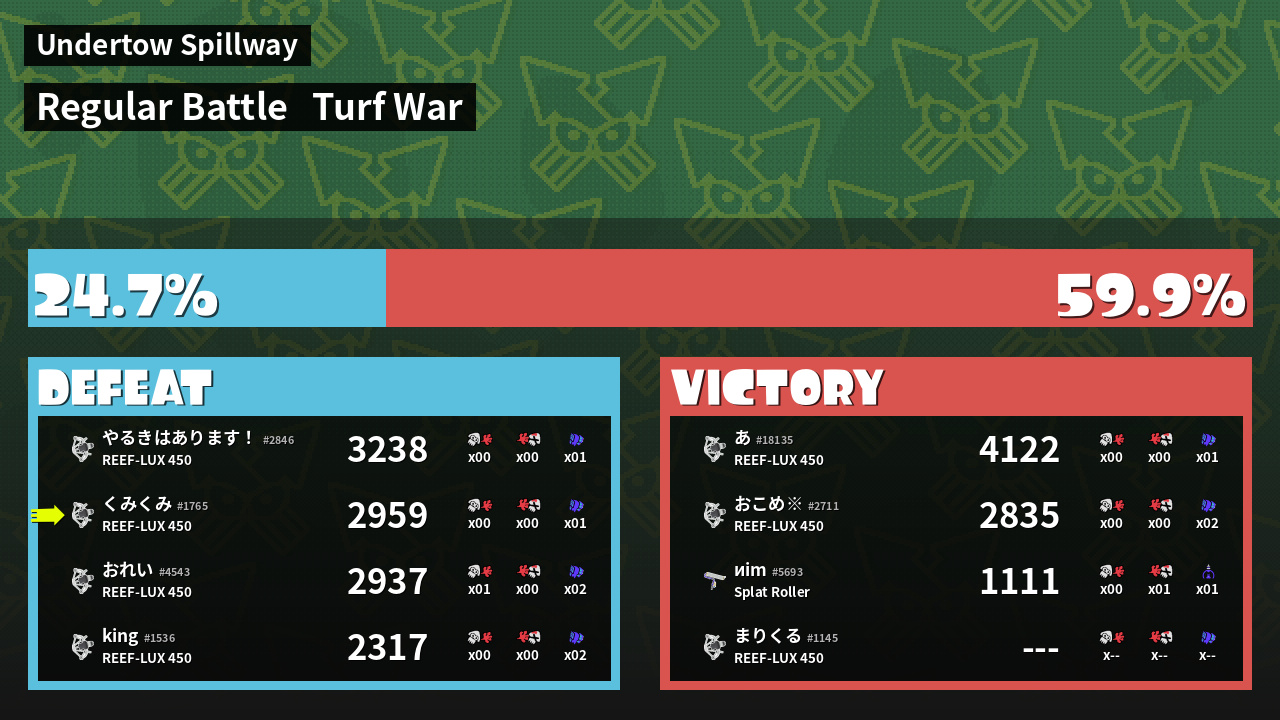 | Mode | Turf War - Regular Battle | ||
