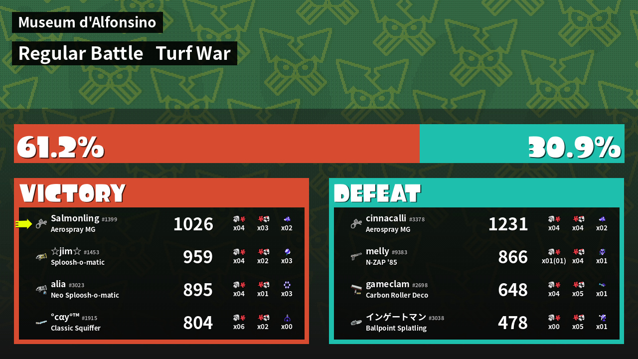 | Mode | Turf War - Regular Battle | ||