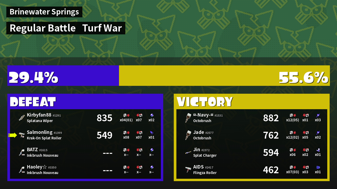 | Mode | Turf War - Regular Battle | ||