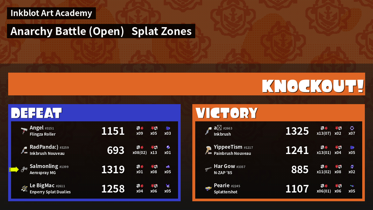 | Mode | Splat Zones - Anarchy Battle (Open) | ||