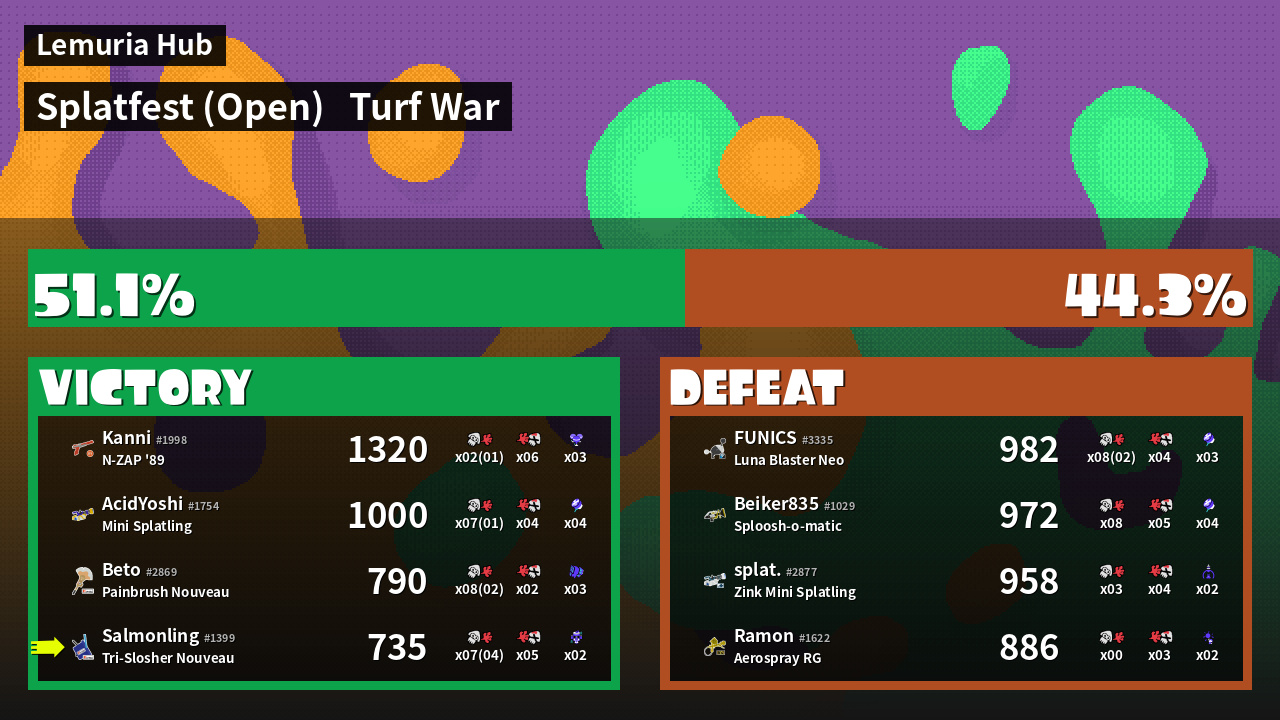 | Medals | #1 Splat Assister #1 Ground Traveler #1 Damage Taker | ||