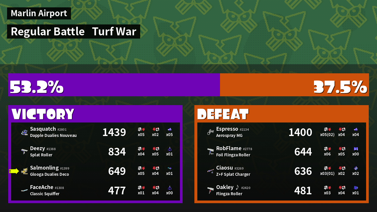 | Medals | #1 Overall Splatter #1 Enemy Splatter #1 Ink Consumer | ||