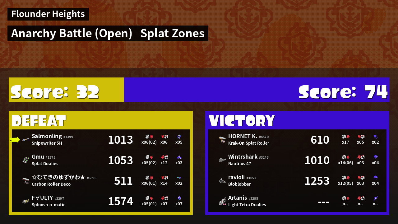 | Mode | Splat Zones - Anarchy Battle (Open) | ||