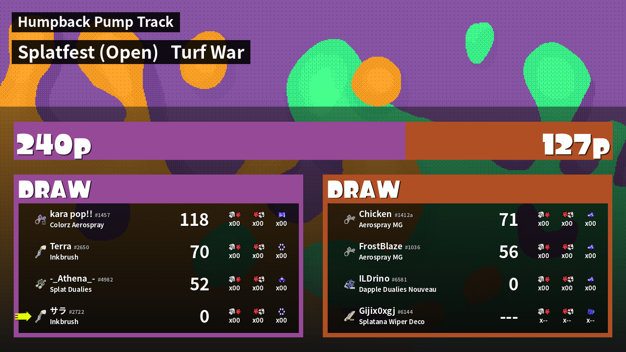 | Mode |    Turf War -   Splatfest (Open) | ||