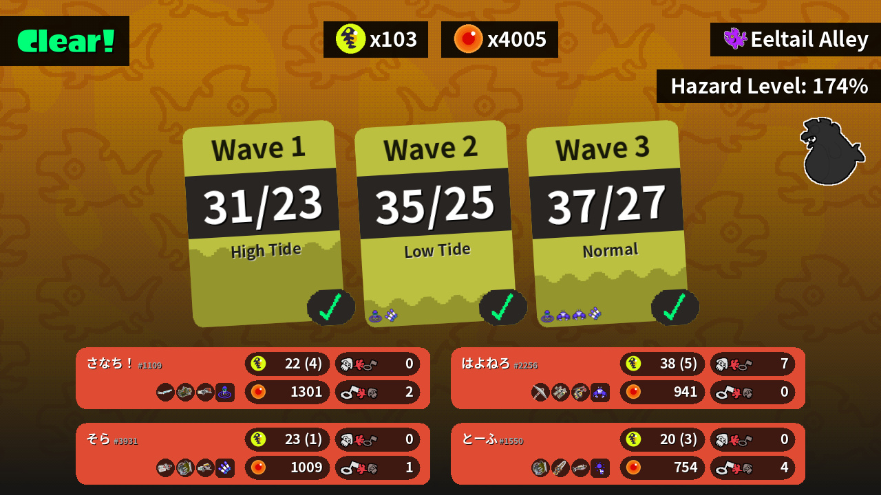 | Weapons | Classic Squiffer Explosher Range Blaster | Recycled Brella 24 Mk I Grizzco Dualies Douser Dualies FF | Heavy Edit Splatling Grizzco Slosher Grizzco Blaster | Grizzco Slosher Grizzco Splatana Grizzco Charger |