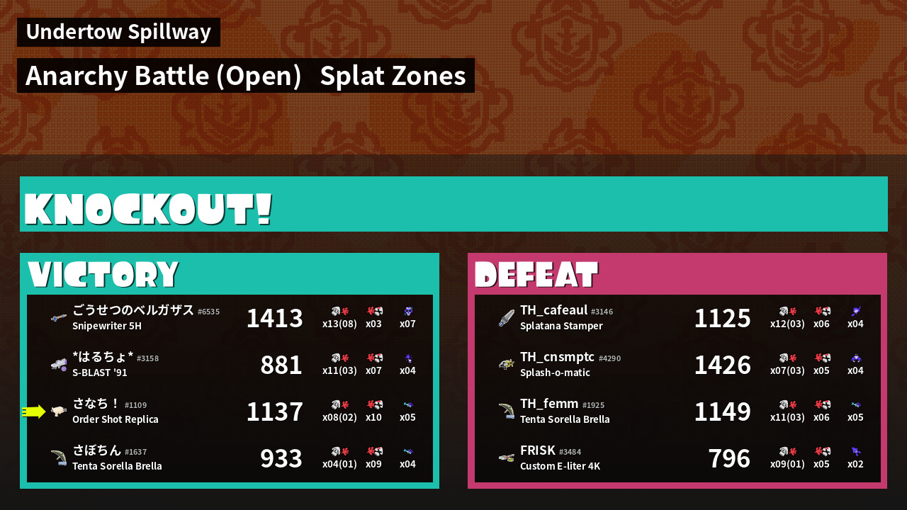 | Mode | Splat Zones - Anarchy Battle (Open) | ||