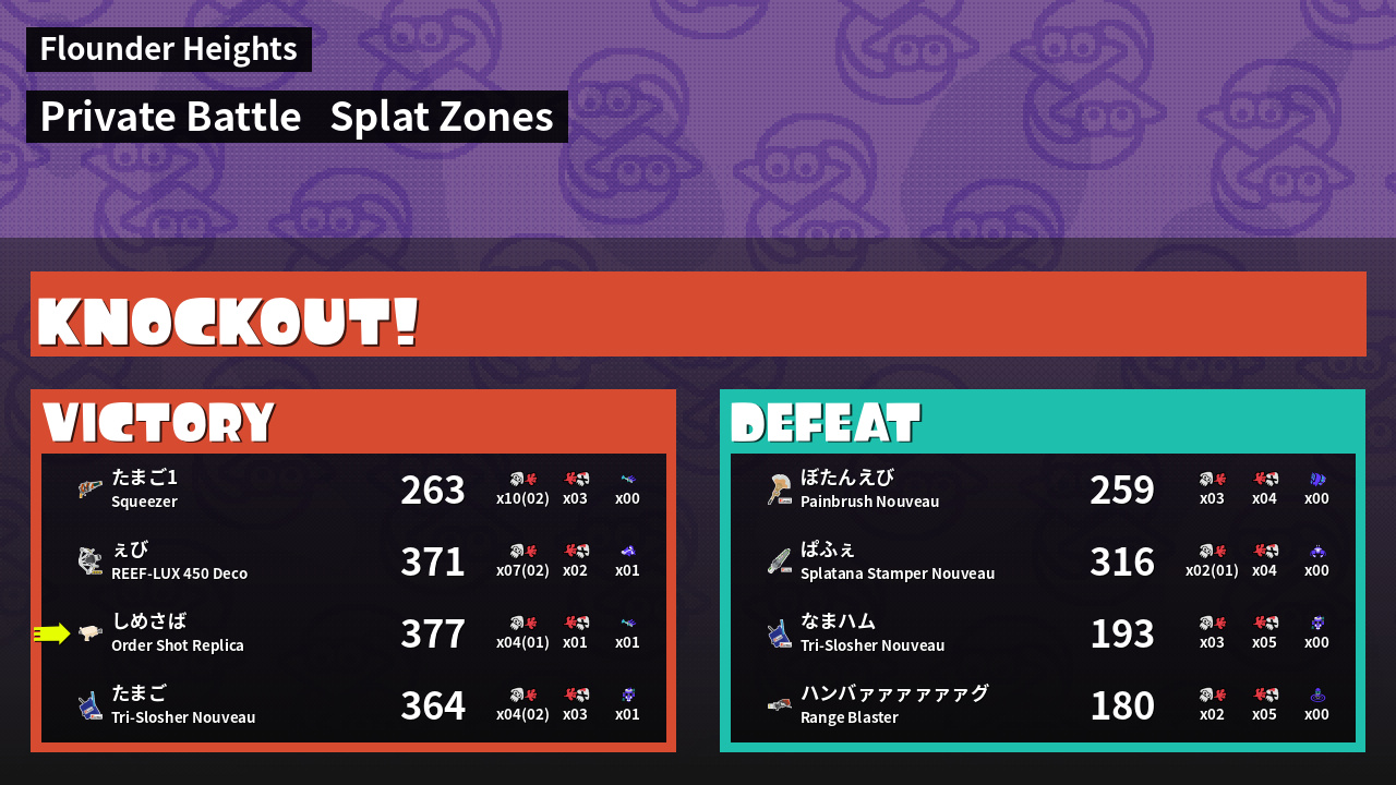 | Mode | Splat Zones - Private Battle | ||