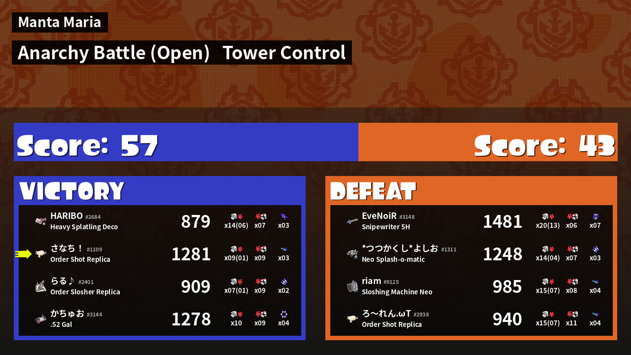 Name | Weapon | Inked | ![]() |