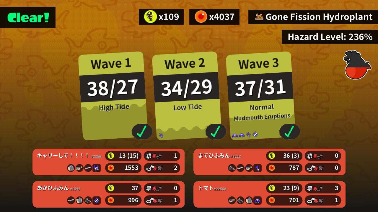| Weapons | Sloshing Machine Mini Splatling Classic Squiffer | Classic Squiffer Sloshing Machine Bloblobber | Bloblobber Classic Squiffer Mini Splatling | Mini Splatling Bloblobber Sloshing Machine |