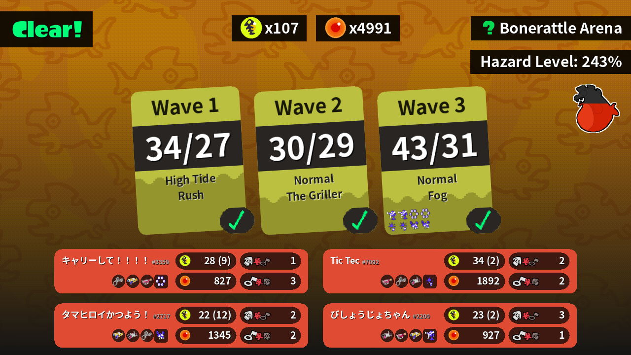 | Boss Salmonid | 15 | 12 | 10 | 13 |