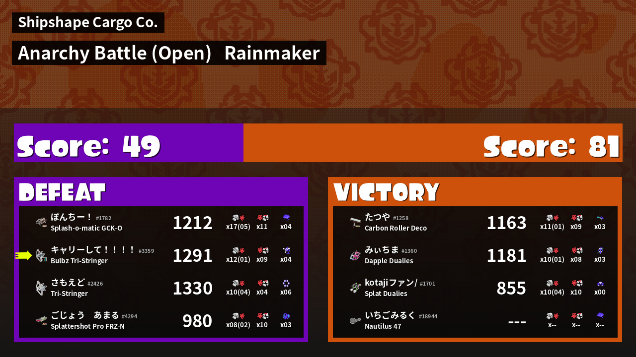 | Mode | Rainmaker - Anarchy Battle (Open) | ||