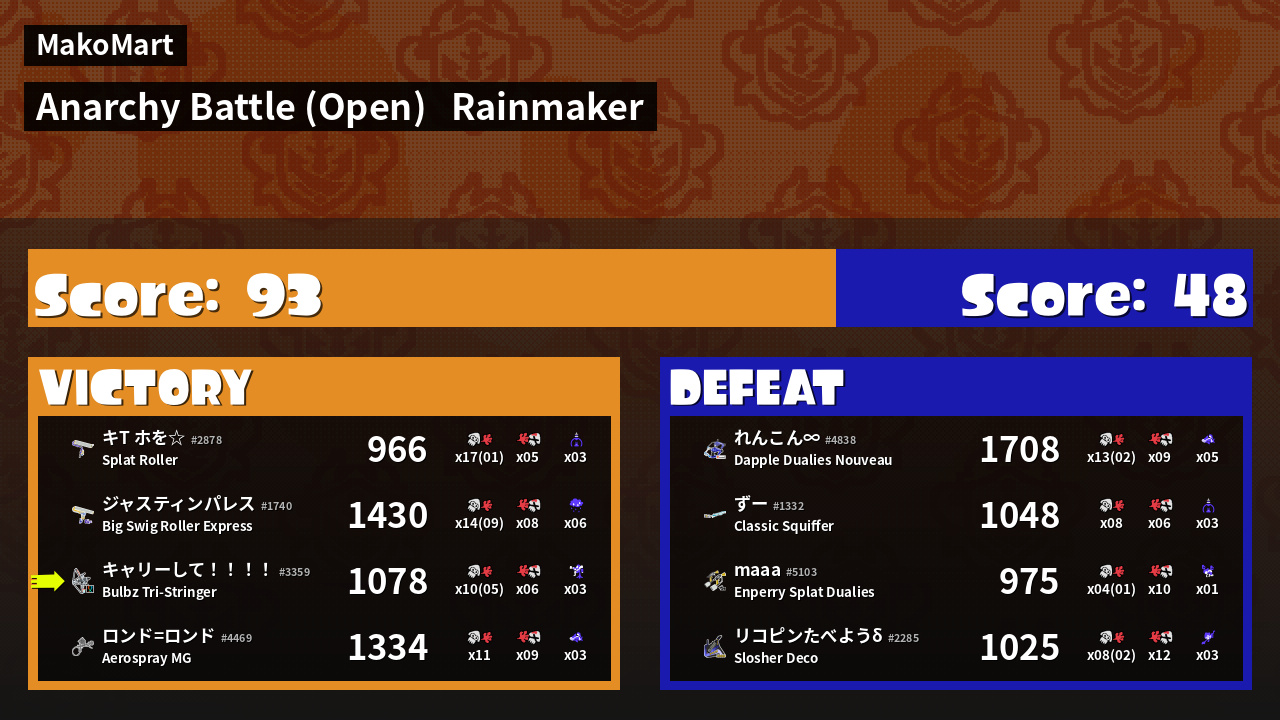 | Mode | Rainmaker - Anarchy Battle (Open) | ||