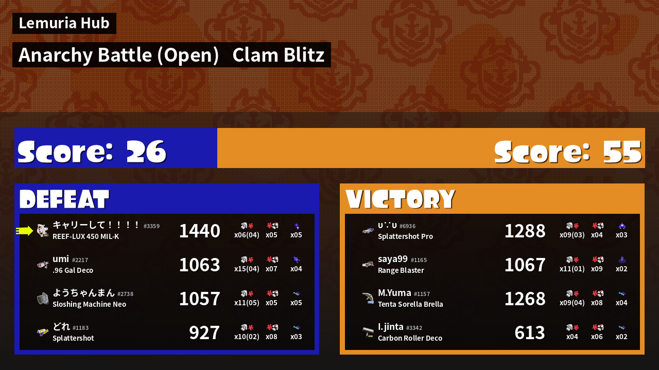 | Mode | Clam Blitz - Anarchy Battle (Open) | ||