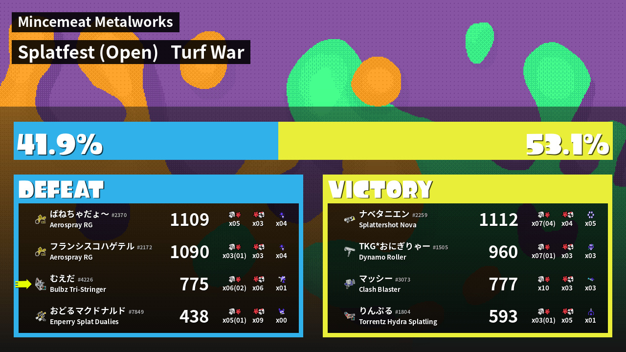 | Medals | #1 Overall Splatter #1 Splat Assister First Splat! |