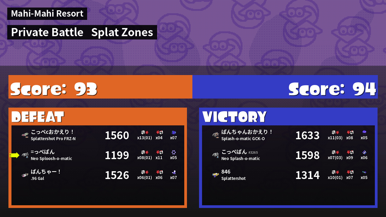 | Mode | Splat Zones - Private Battle | ||