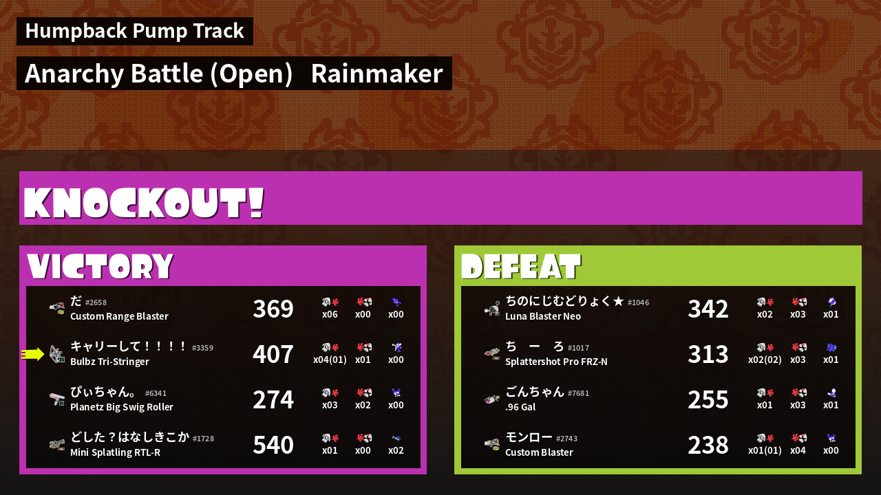 | Mode | Rainmaker - Anarchy Battle (Open) | ||