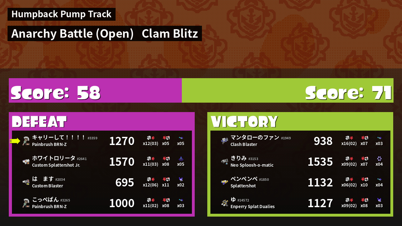 | Mode | Clam Blitz - Anarchy Battle (Open) | ||