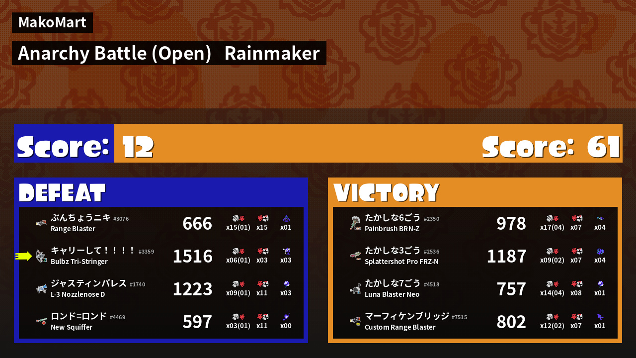 | Mode |    Rainmaker -   Anarchy Battle (Open) | ||
