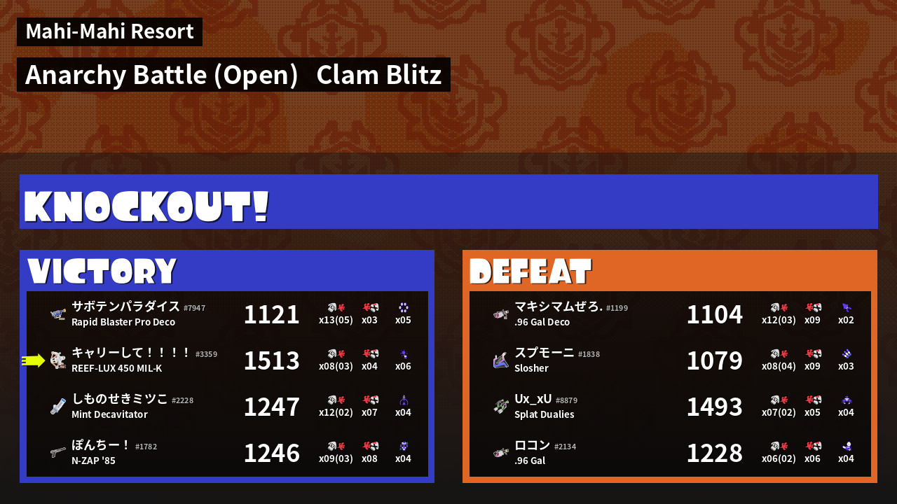 | Mode | Clam Blitz - Anarchy Battle (Open) | ||