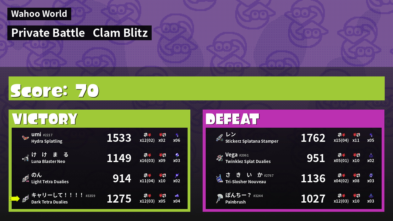 | Medals | #1 Damage Taker #1 Reefslider User #2 Overall Splatter | ||