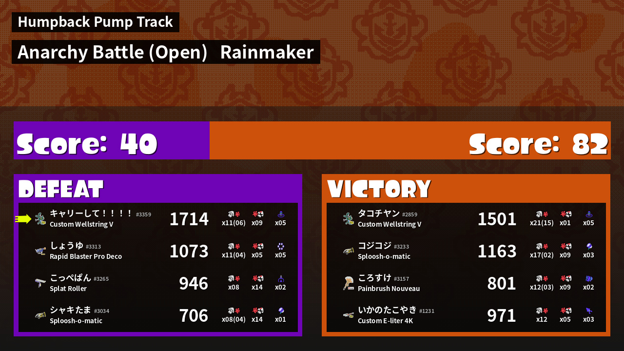 | Mode | Rainmaker - Anarchy Battle (Open) | ||