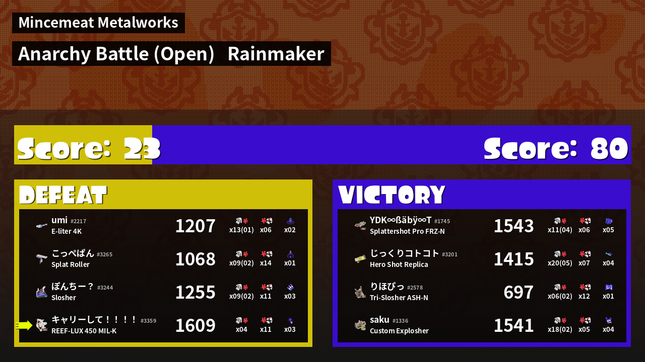 | Mode | Rainmaker - Anarchy Battle (Open) | ||
