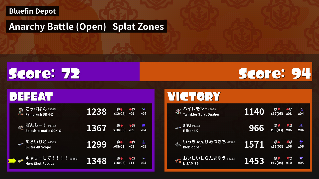 | Mode | Splat Zones - Anarchy Battle (Open) | ||