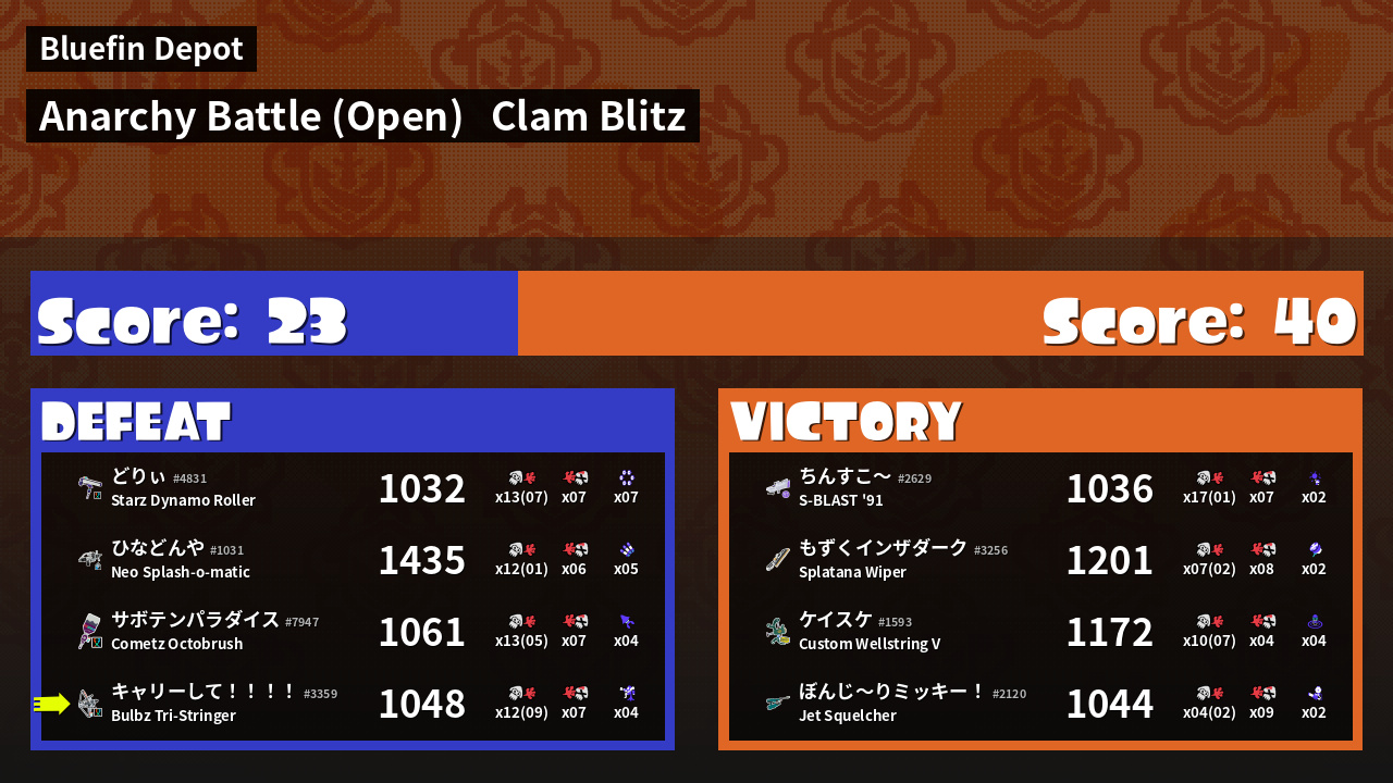 | Mode | Clam Blitz - Anarchy Battle (Open) | ||