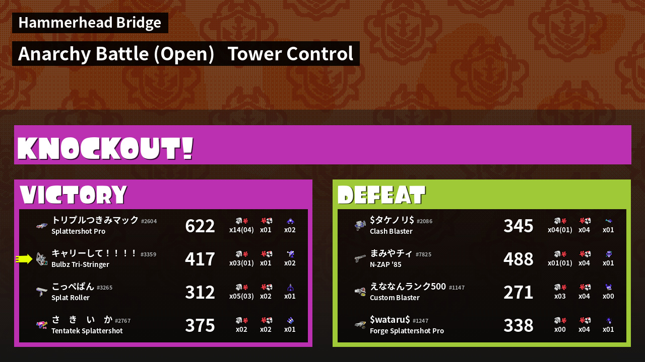 | Mode | Tower Control - Anarchy Battle (Open) | ||