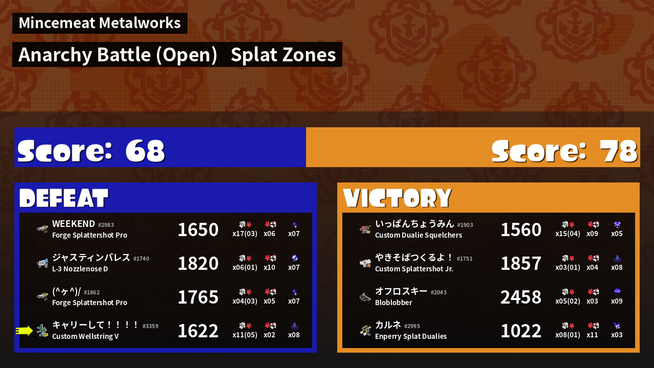| Mode | Splat Zones - Anarchy Battle (Open) | ||