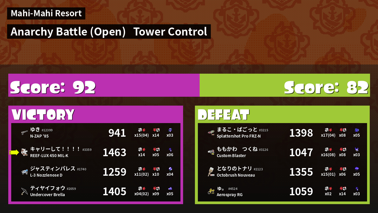 | Mode | Tower Control - Anarchy Battle (Open) | ||
