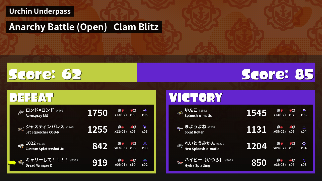| Mode | Clam Blitz - Anarchy Battle (Open) | ||