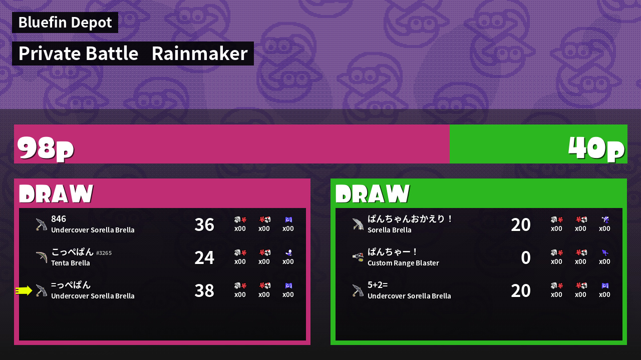 | Weapon | Undercover Sorella Brella ( Torpedo / Splattercolor Screen) | ||