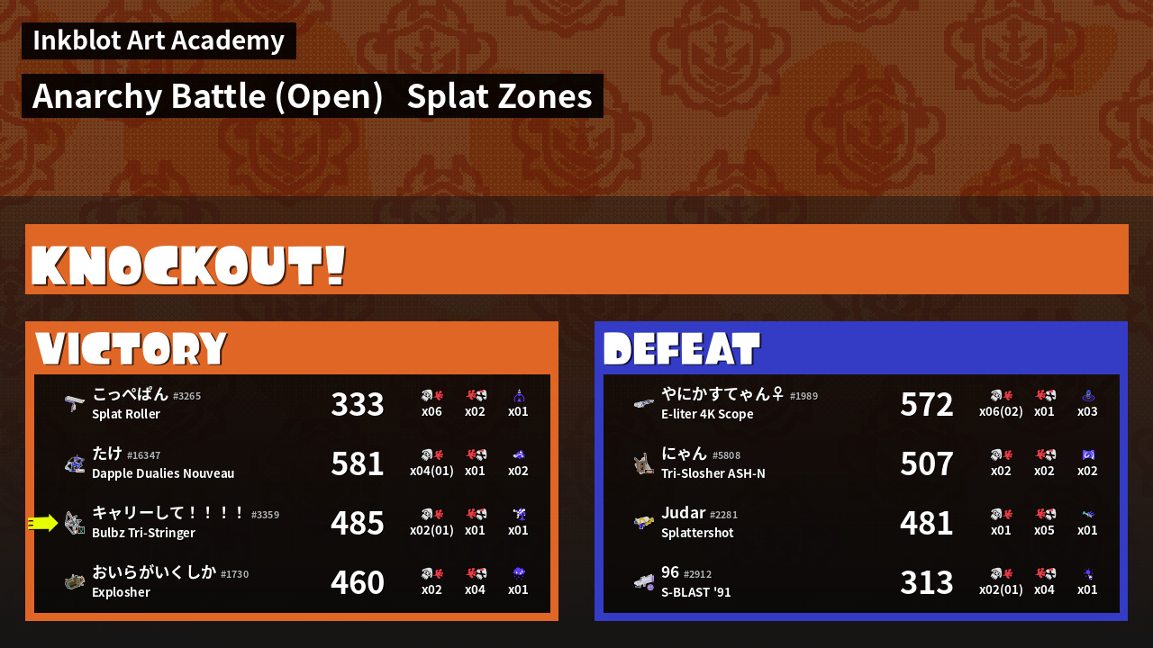 | Mode | Splat Zones - Anarchy Battle (Open) | ||