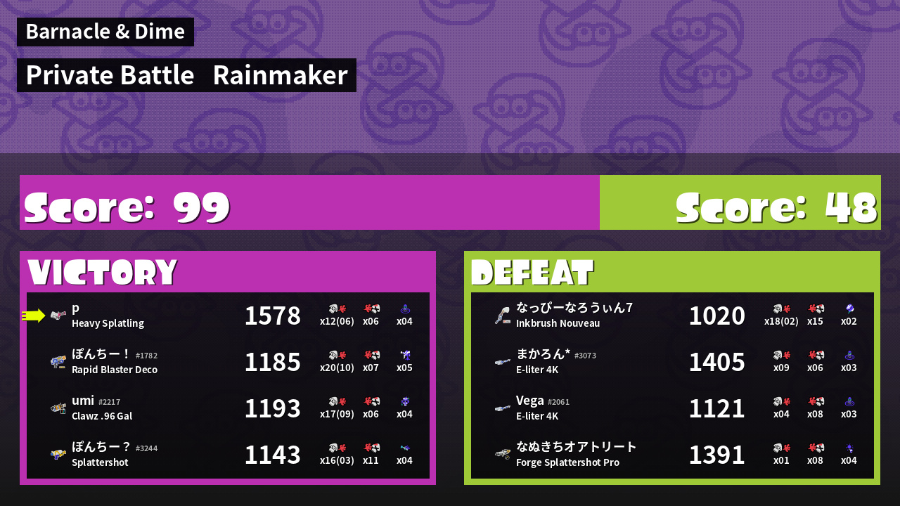 | Weapon | Heavy Splatling ( Sprinkler / Wave Breaker) | ||