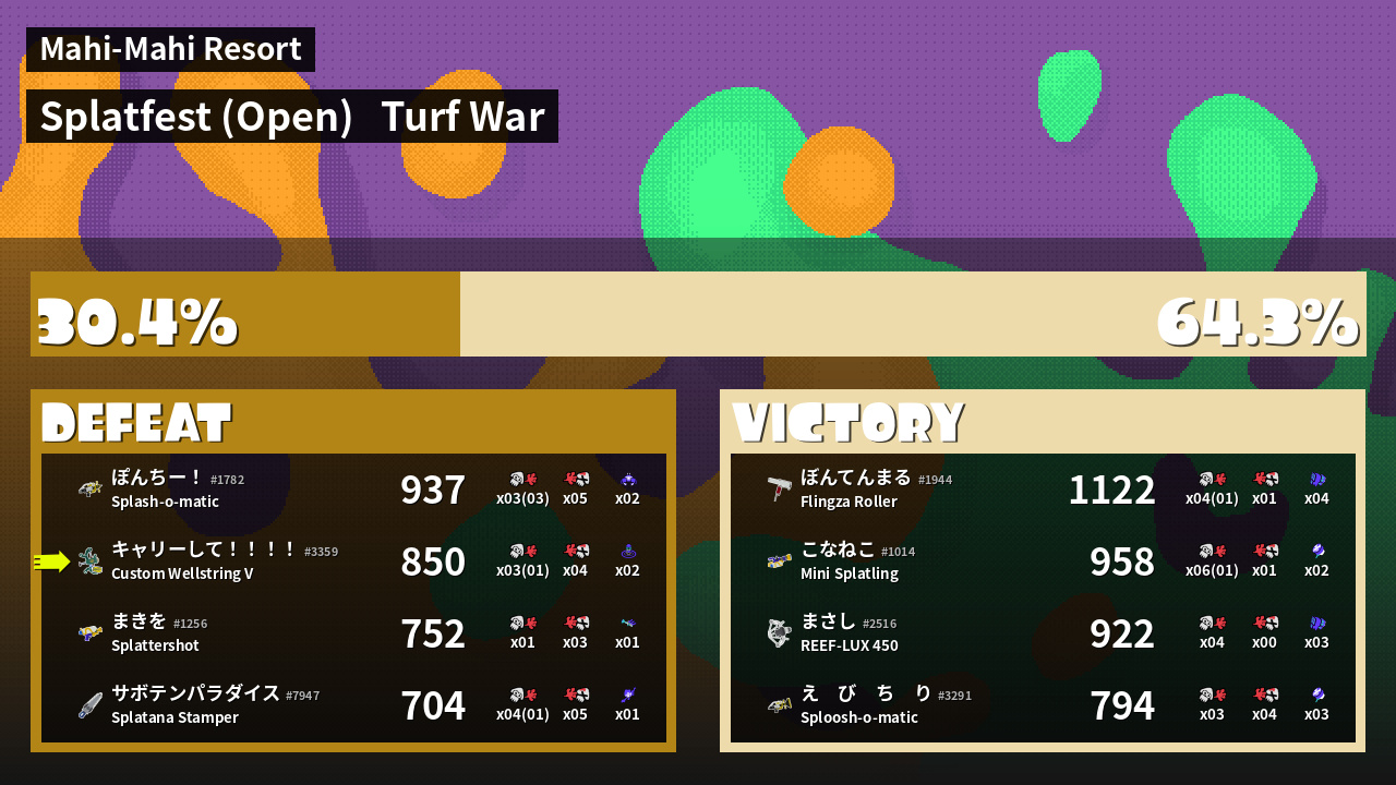 | Medals | #1 Enemy-Base Inker #1 Wave Breaker User #2 Overall Splatter | ||
