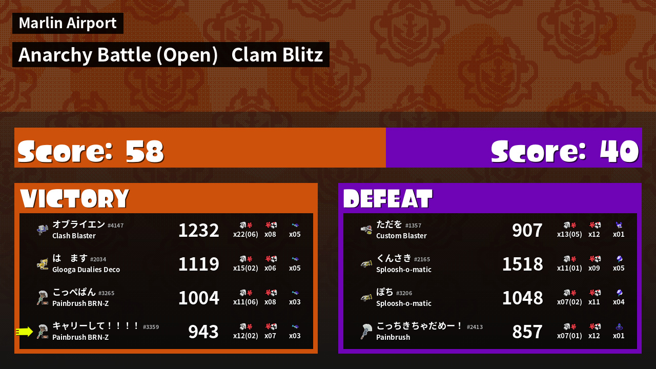 | Mode | Clam Blitz - Anarchy Battle (Open) | ||