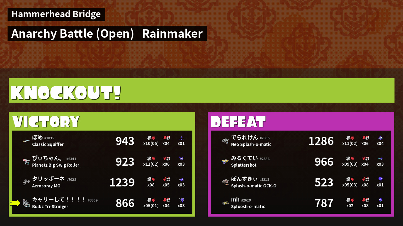 | Mode | Rainmaker - Anarchy Battle (Open) | ||