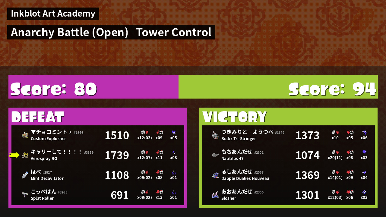 | Mode | Tower Control - Anarchy Battle (Open) | ||