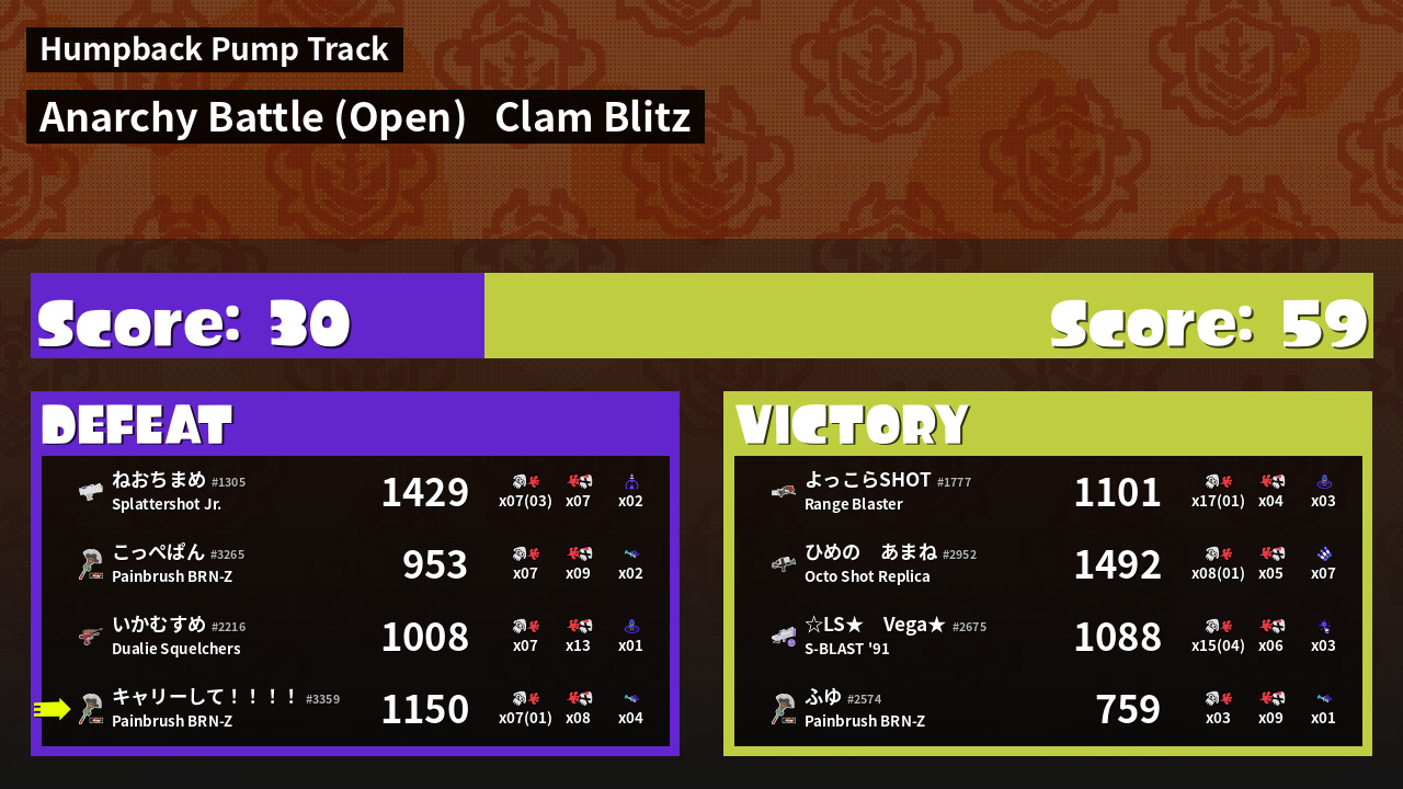 | Mode | Clam Blitz - Anarchy Battle (Open) | ||