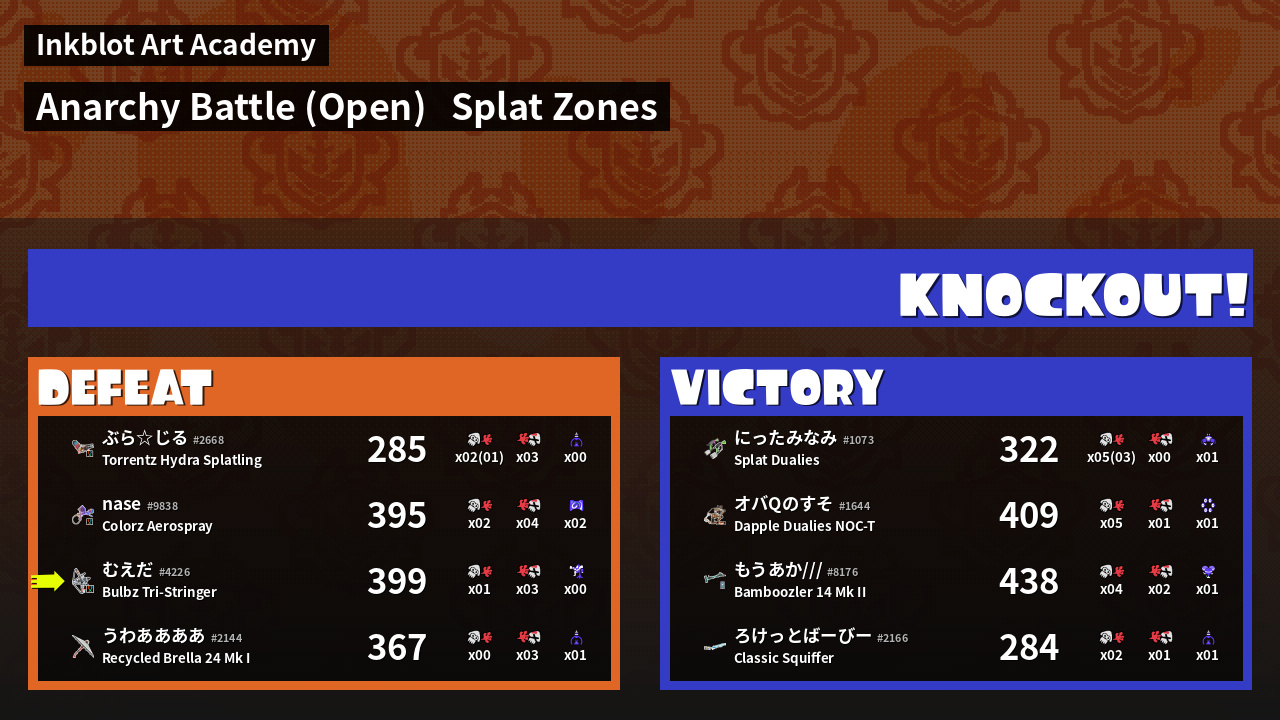 Name | Weapon | Inked | ![]() |