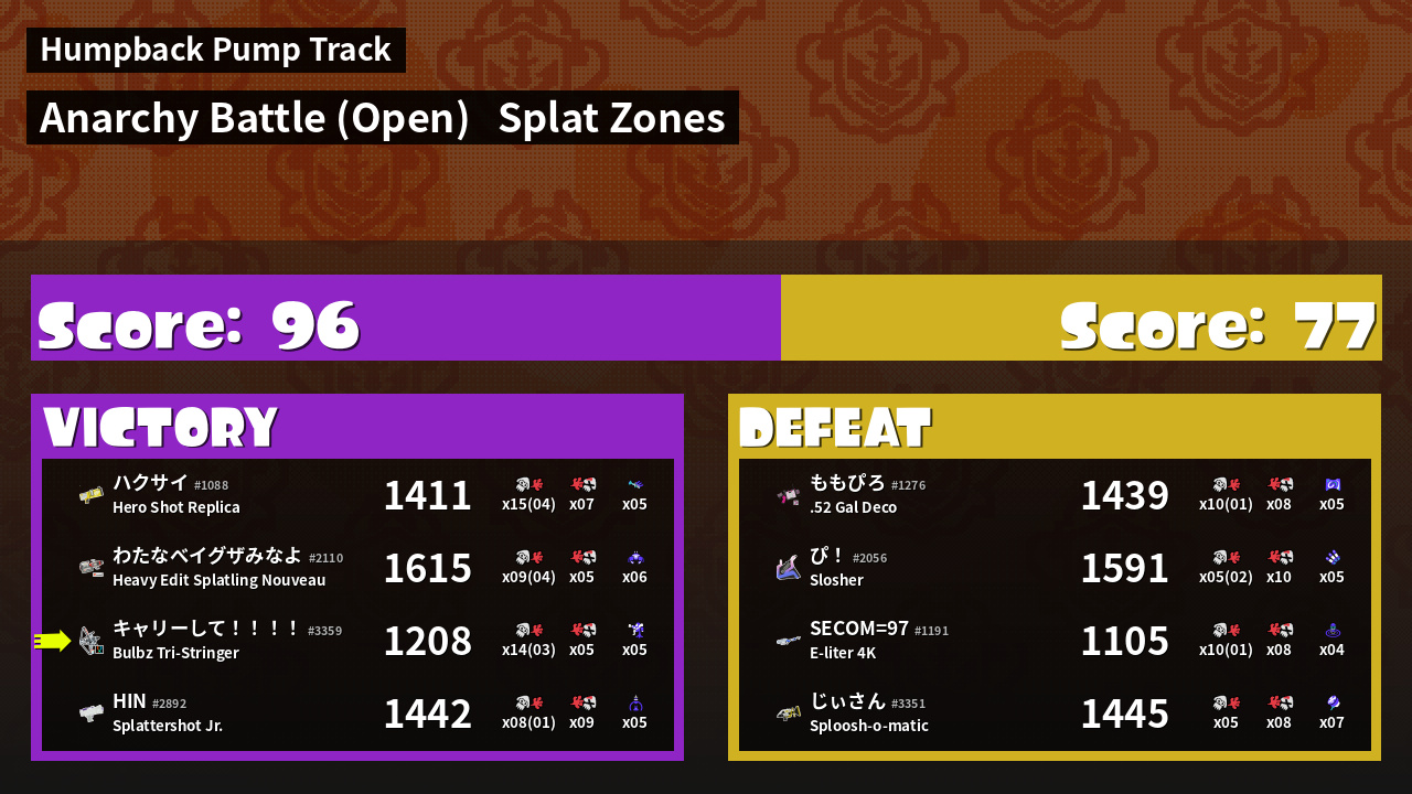 | Mode | Splat Zones - Anarchy Battle (Open) | ||
