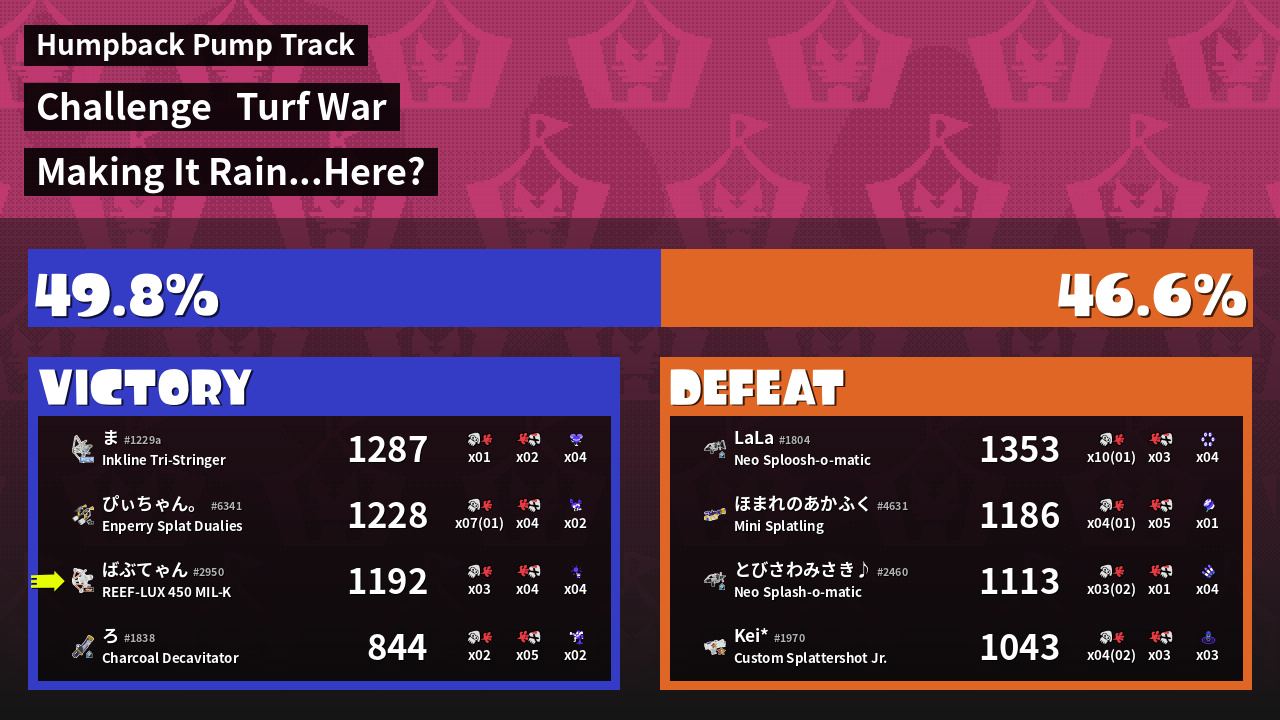 | Mode | Turf War - Challenge | ||