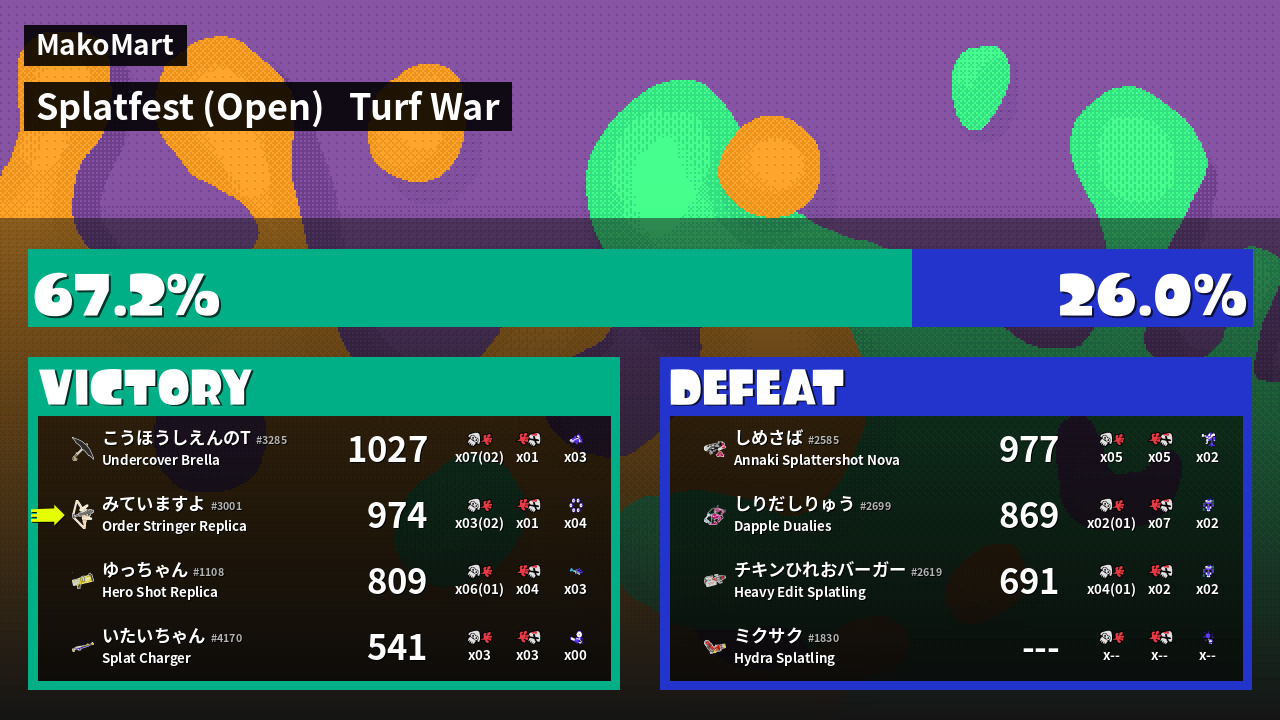 | Medals | #1 Home-Base Inker #1 Super Jump Spot #1 Splat Assister | ||