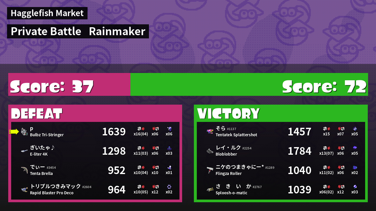 | Medals | #1 Overall Splatter #1 Turf Inker #1 Popular Target | ||