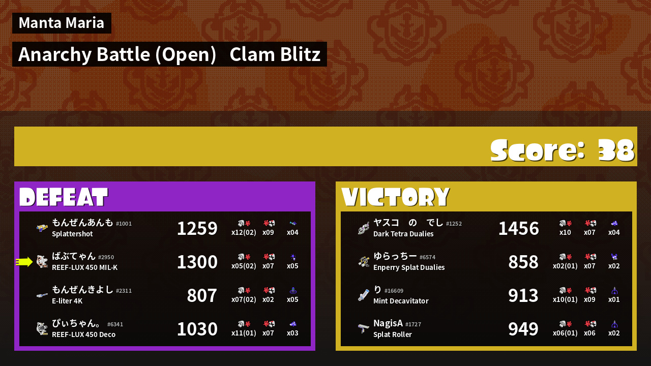 | Mode | Clam Blitz - Anarchy Battle (Open) | ||