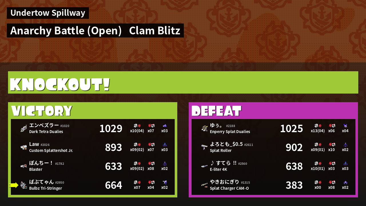 | Mode | Clam Blitz - Anarchy Battle (Open) | ||