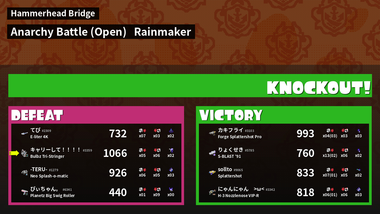 | Mode | Rainmaker - Anarchy Battle (Open) | ||