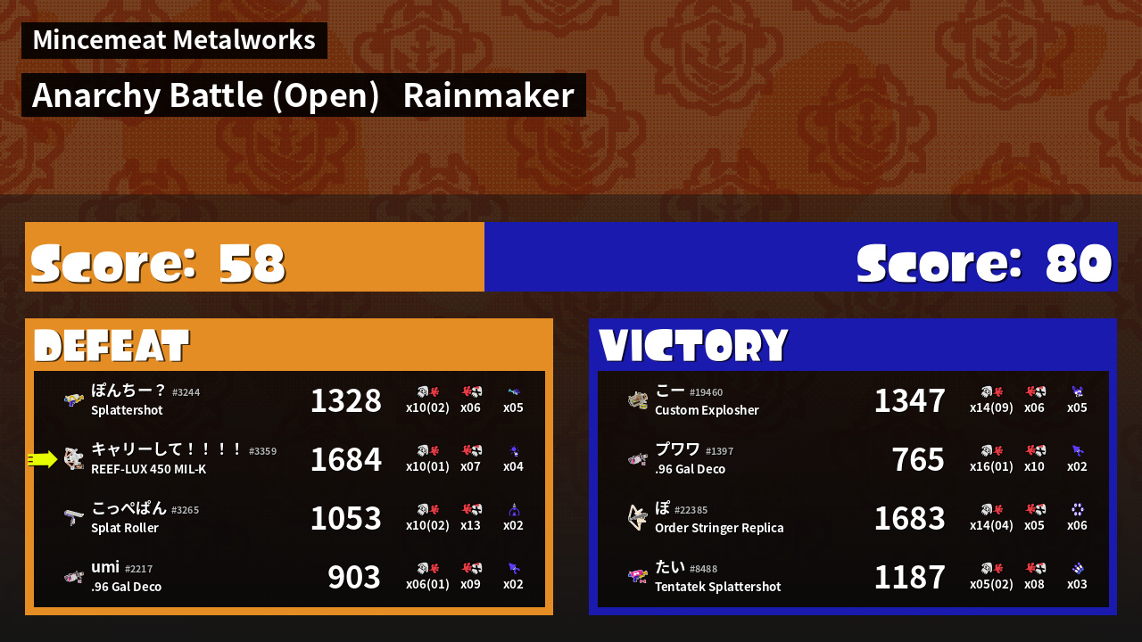 | Mode | Rainmaker - Anarchy Battle (Open) | ||