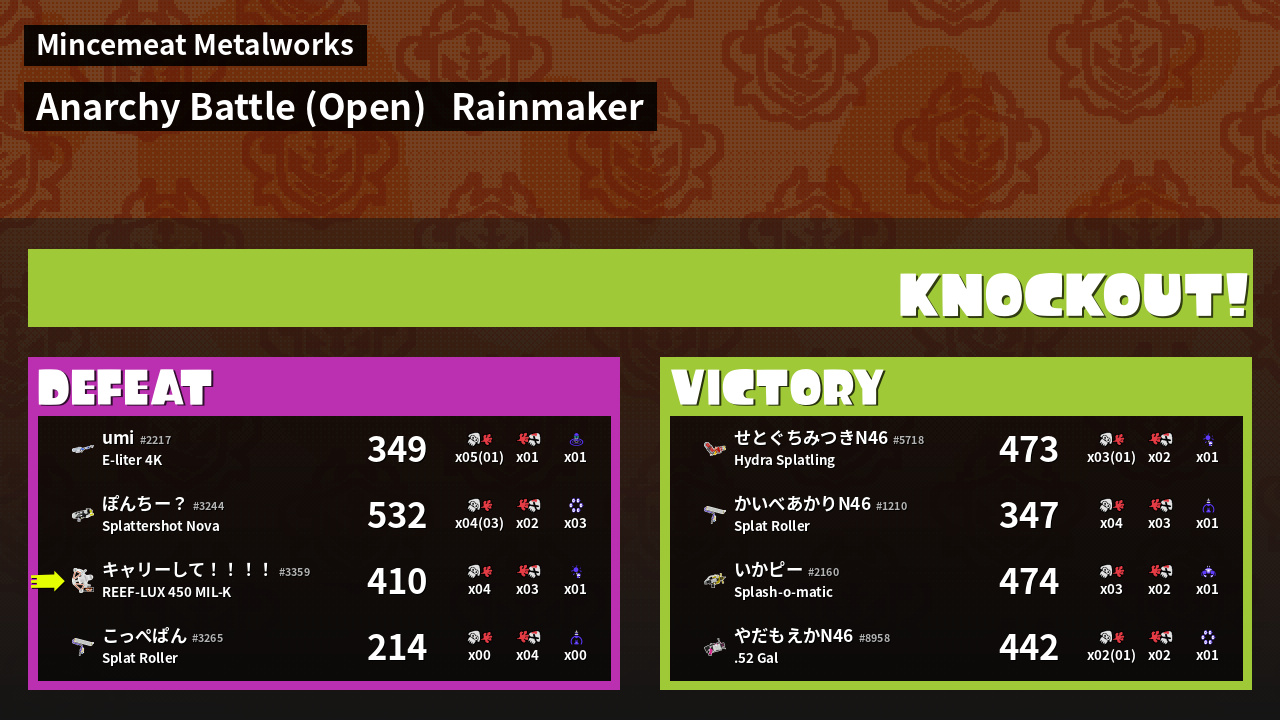 | Mode | Rainmaker - Anarchy Battle (Open) | ||